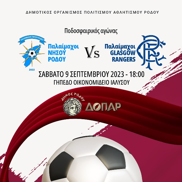 Ποδοσφαιρικός αγώνας: Παλαίμαχοι Νήσου Ρόδου – Ρέιντζερς Γλασκώβης