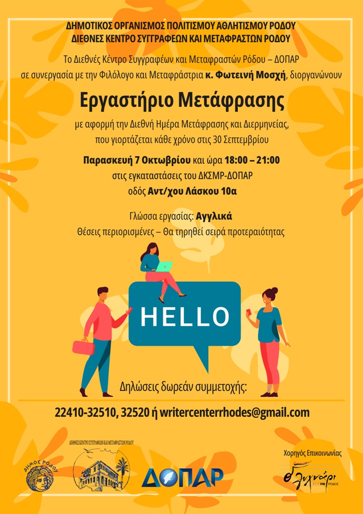 ΔΚΣΜΡ – ΔΟΠΑΡ Εργαστήριο Μετάφρασης με την κ. Φωτεινή Μοσχή