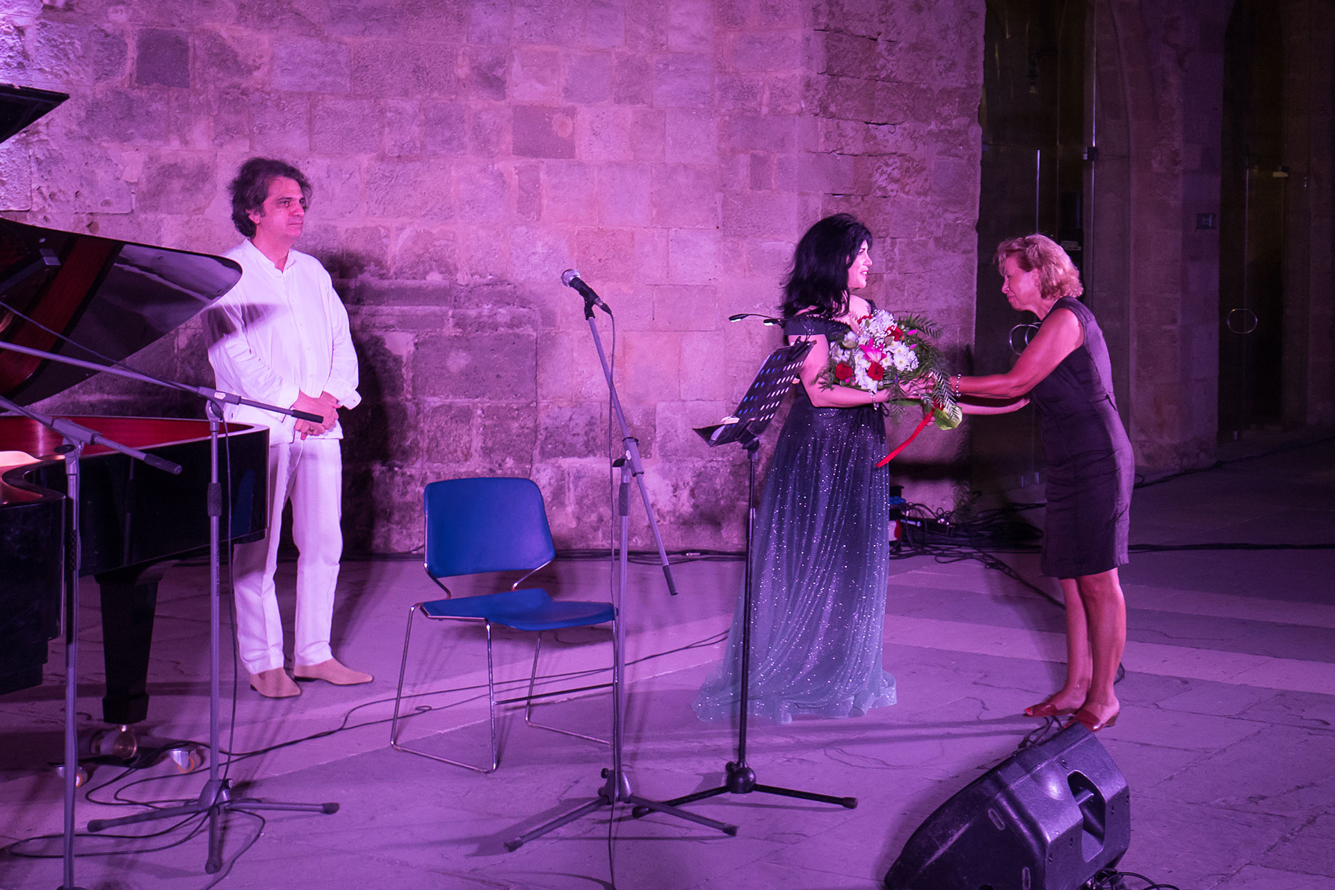 Την εκδήλωση «άνοιξε» η Προϊσταμένη Πολιτισμού κ. Νάνσυ Τρυποσκούφη, η οποία καλωσόρισε εκ μέρους του Προέδρου του Δ.Ο.Π.Α.Ρ. κ. Αλέξανδρου Κολιάδη τους διεθνούς φήμης καλλιτέχνες κ. Βασίλη Τσαμπρόπουλο – διακεκριμένο σολίστα πιάνου- και την κ. Νεκταρία Καραντζή, εξέχουσα ερμηνεύτρια παραδοσιακών τραγουδιών, οι οποίοι μας μάγεψαν με το ευρηματικό τους μουσικό ντουέτο και μας ταξίδεψαν στον πυρήνα της αναβίωσης των πιο διάσημων μυθικών και ιστορικών στιγμών των κάστρων και στις πιο καίριες στιγμές της Μακρο-Ιστορίας, όπως π.χ. η Αλωση της Πόλης, Το κούρσος της Ανδριανούπολης , η Πολιορκία της Ρόδου αλλά και της Μικρο- ιστορίας των ερώτων, οι οποίες πολύ «φυσικά» συμβαίνουν και οργανικά ενσωματώνονται, ως προσωπικές ερωτικές ιστορίες, στην ήδη υπάρχουσα γραμμική Ιστορία των αιώνων.