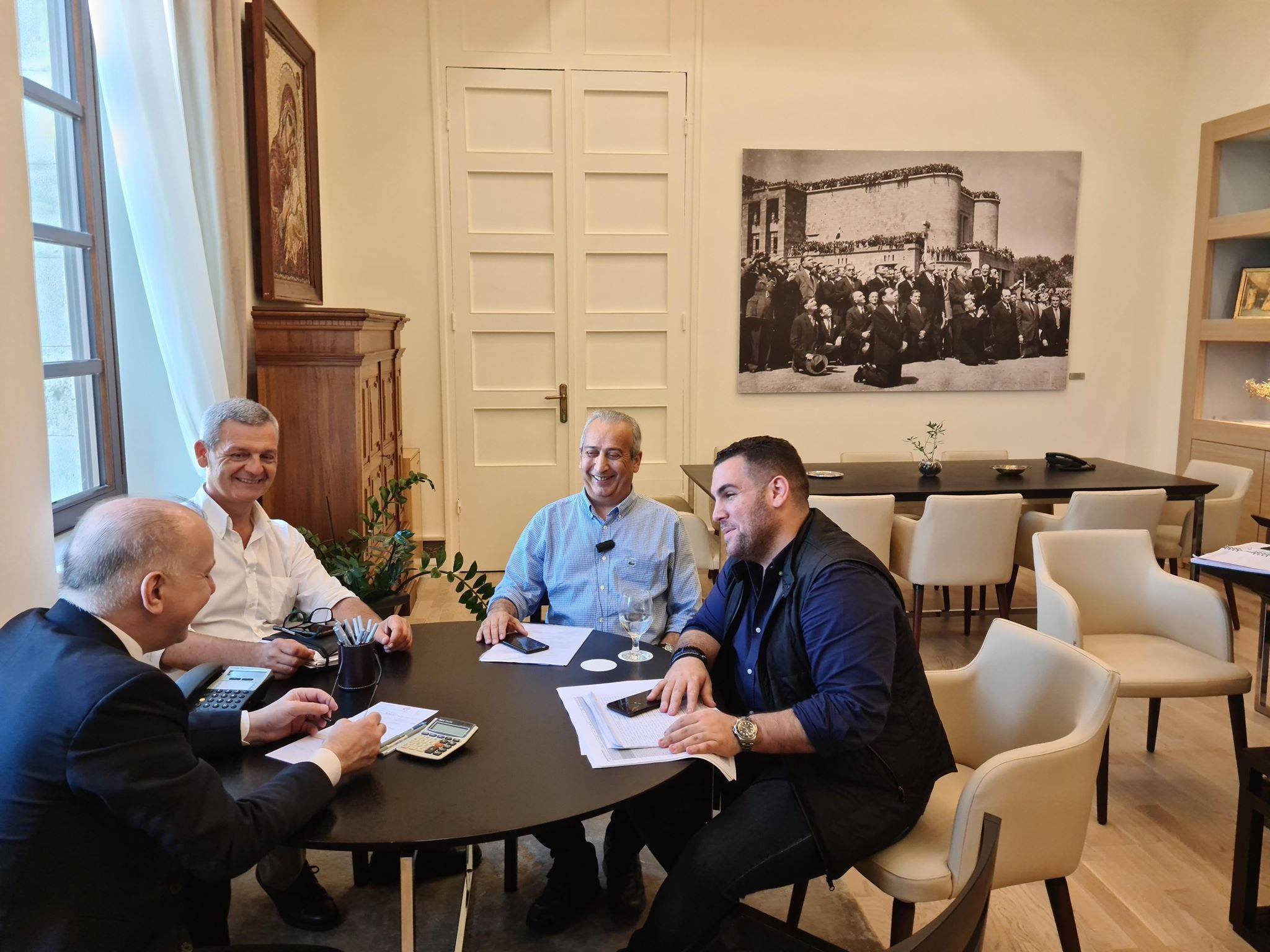 Στην συνάντηση παραβρέθηκαν οι αντιδήμαρχοι Οικονομικών -Προσόδων και Ενεργειακών Επενδύσεων Τηλέμαχος Καμπούρης και Τουριστικής Ανάπτυξης- Πολιτισμού και Διεθνών Σχέσεων Κωνσταντίνος Ταρασλιάς.