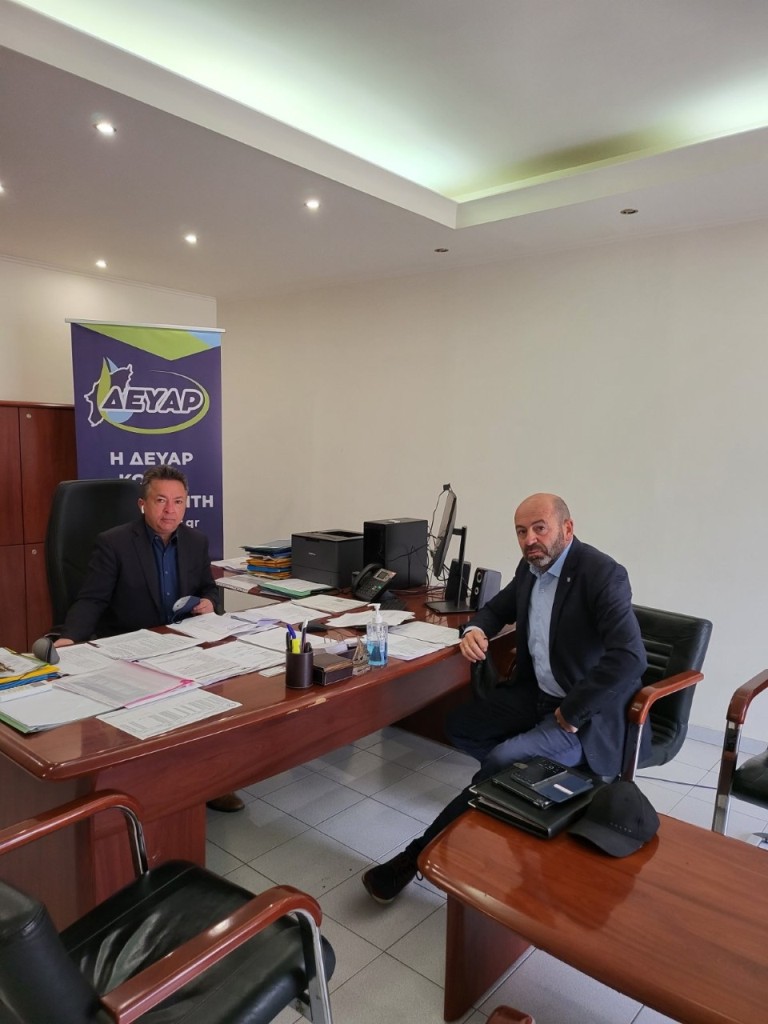 Με τον Γενικό Γραμματέα της Ομοσπονδίας Ινστιτούτου Καταναλωτών (ΙΝΚΑ) Ελλάδος και ταυτόχρονα Πρόεδρο του Ινστιτούτου Καταναλωτών (ΙΝΚΑ) Ρόδου Δωδεκανήσου κ. Γιώργο Ευγενικό, συναντήθηκε σήμερα ο Πρόεδρος της ΔΕΥΑΡ Ιωάννης Καμπούρης, με τον οποίο συζήτησαν για την ορθολογική διαχείριση των υδάτινων πόρων, για την αξία του νερού και την κατανάλωση αυτού με υπευθυνότητα. Καθ’ όλη τη διάρκεια της συνάντησης υπήρξε διαλογική συζήτηση και συμφωνήθηκε μεταξύ άλλων να εκτυπωθεί ένα ενημερωτικό φυλλάδιο με χρήσιμες πληροφορίες για τους καταναλωτές, το οποίο θα διανεμηθεί μαζί με τους λογαριασμούς της ΔΕΥΑΡ.