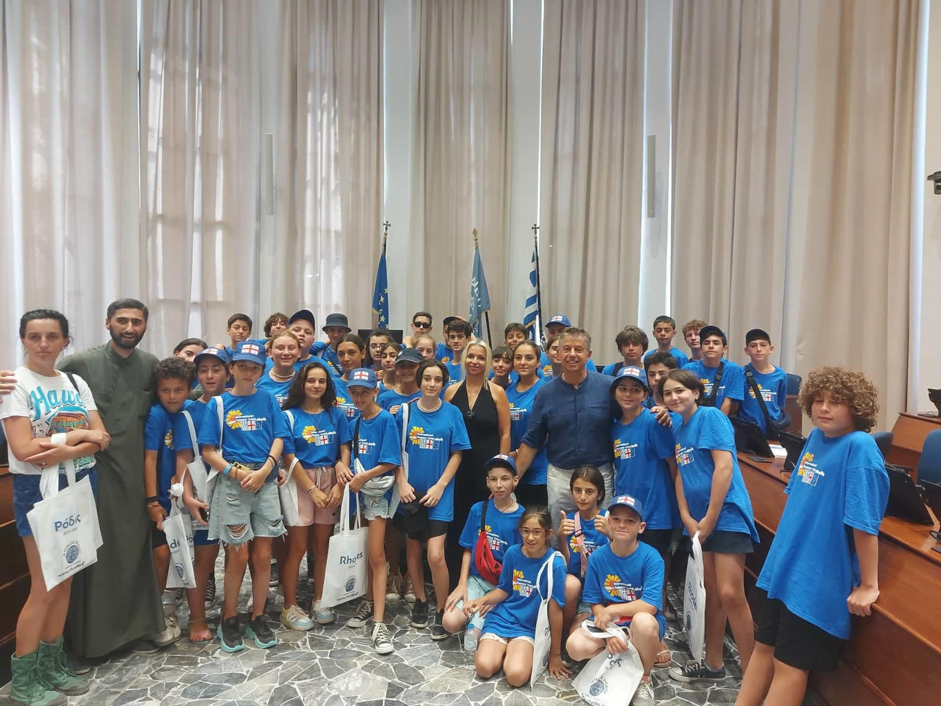 Μαθητές από τη Γεωργία οι οποίοι φιλοξενήθηκαν στην θερινή κατασκήνωση της Ιεράς Μητρόπολης Ρόδου στη Λάρδο και τους συνοδούς τους με επικεφαλής τον ιερέα Nicholas Skhulukhia, υποδέχθηκε στο Δημαρχιακό Μέγαρο ο εντεταλμένος δημοτικός σύμβουλος Τουρισμού, Δημοσίων και Δημοσίων Σχέσεων κ. Θανάσης Βυρίνης.